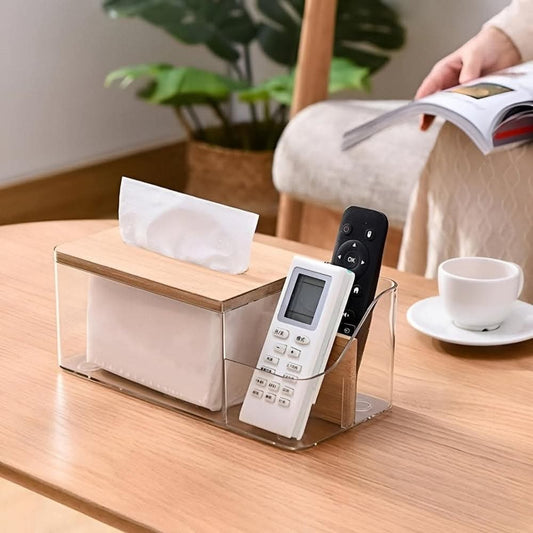 ClearView Wooden Lid Tissue Box with Dual Compartments
