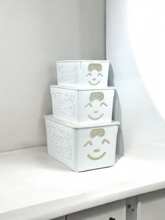 3-Piece Set Of Purple Smiley Toys Storage Baskets With Lids