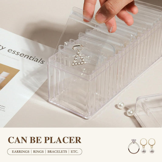 Clear Jewelry Organizer Box with 20 pvc Resealable Zip Bags – Compact Storage Case for Rings, Earrings, Necklaces & Small Accessories