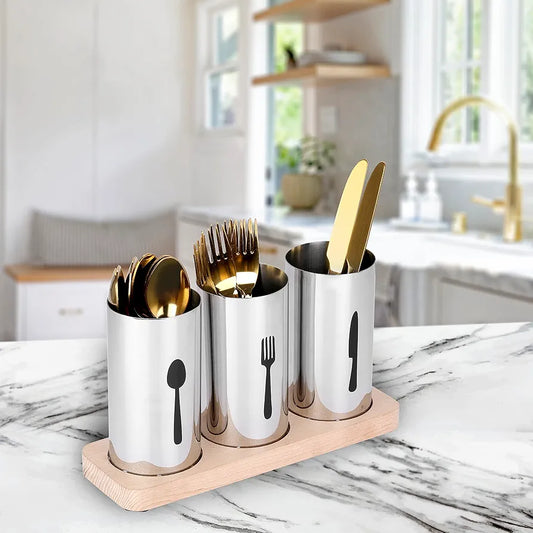 Stainless Steel 3 Portion Cutlery Holder With Tray