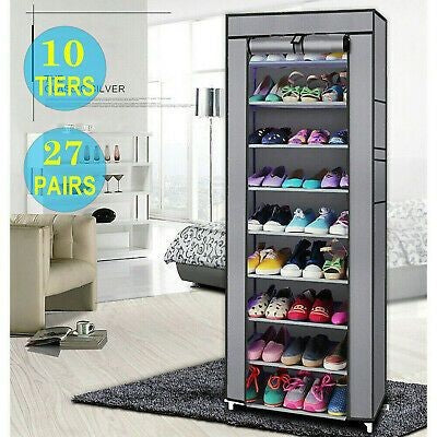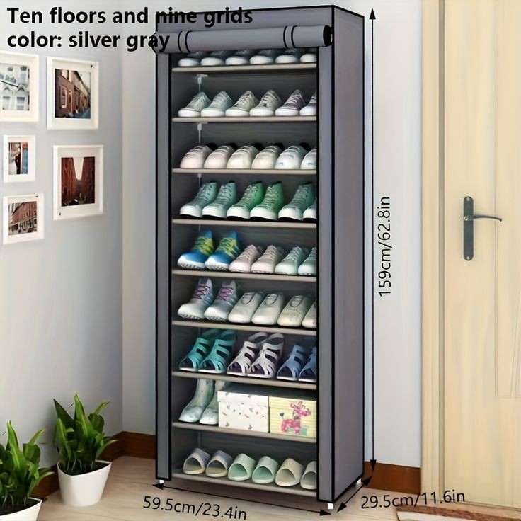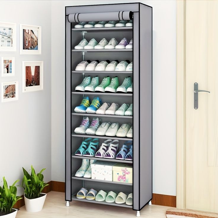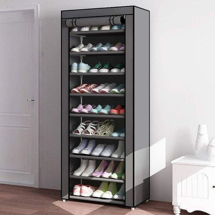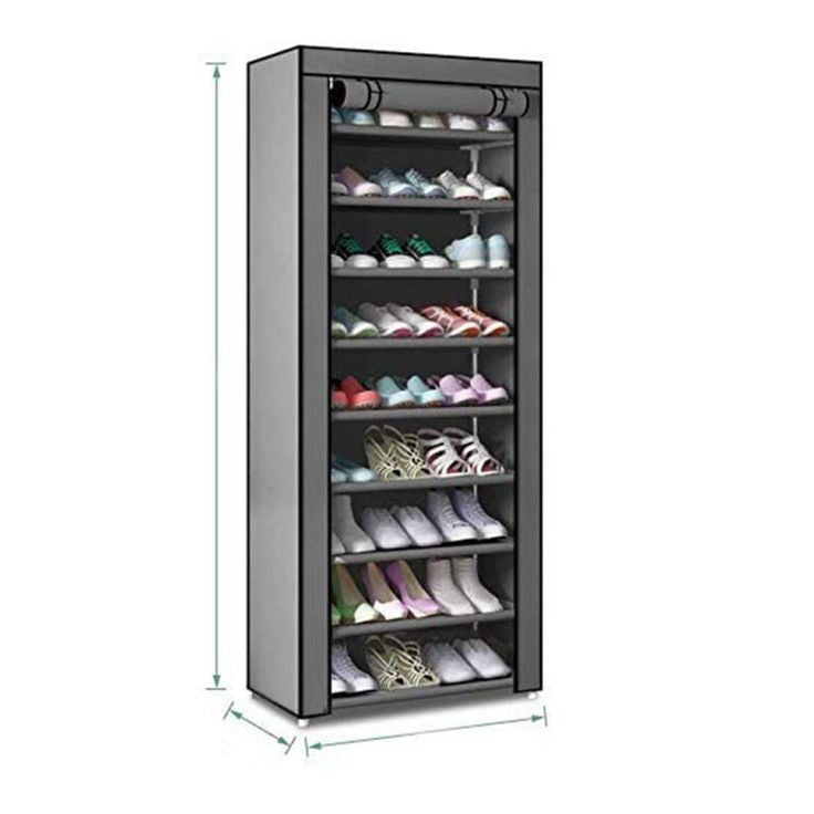 ✓Durable, Grime –proof & dust resistant This shoe cabinet organizer is ideal for those who are tired of having to deal with multiple setups and tools. A sturdy shoe rack with9 shelves and a cover makes this product ideal for keeping your shoes organized. Fabric panels ,equipped with a zipper and hook-and-loop fasteners. This durable and easy-to-clean shoe storage is made from fabric panels ,features a dust-resistant design and is water proof.