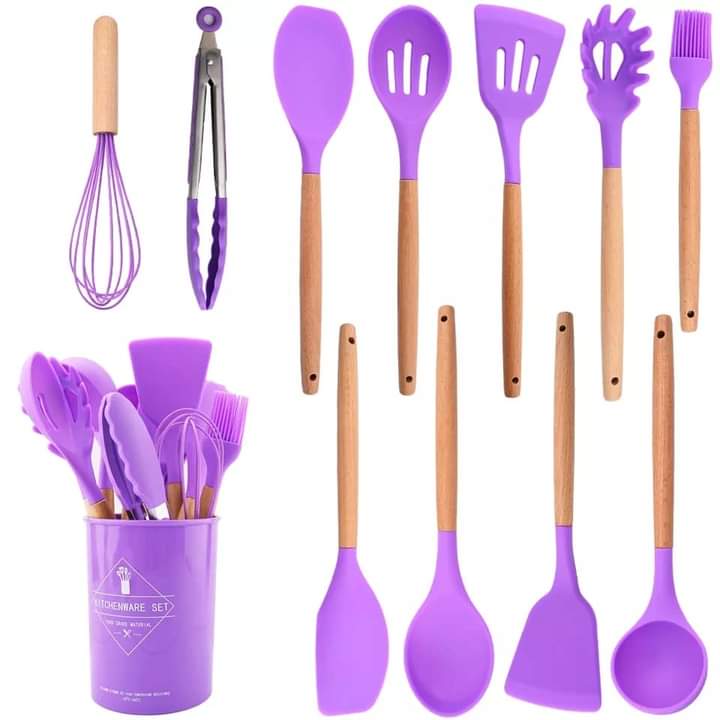 Silicone Utensil Set is Kitchen helper, perfect for all types of foods and cooking kitchen accessories, stir fry, stirring cream, butter, ice cream, etc., Include spatula ,basting brush ,pointed spatula ,round-edge turner, ladle, straight-edge turner, Spoon, tongs, pasta fork and perfect for all types of foods and cooking.