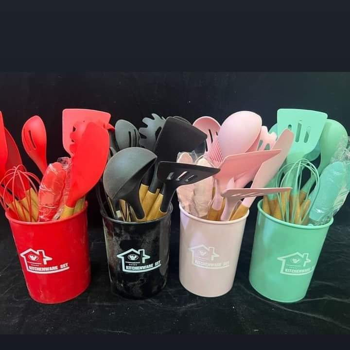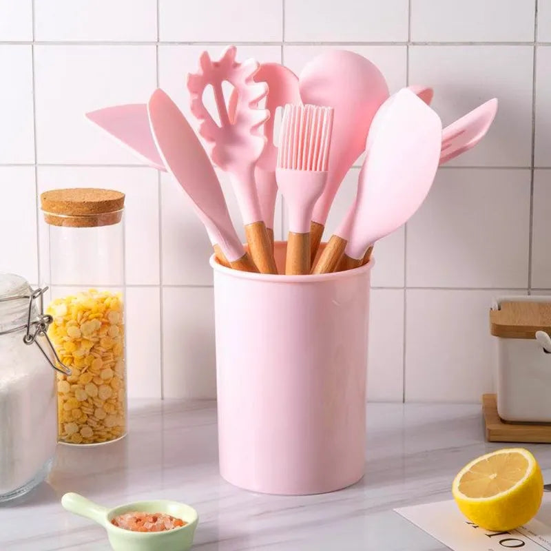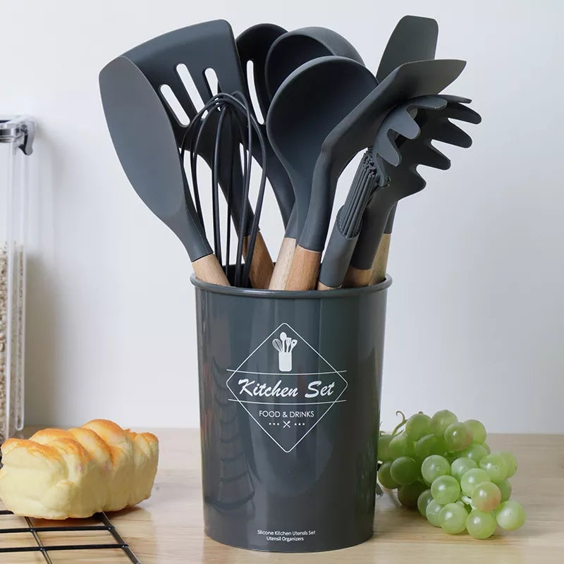 12pcs silicone cookware non stick spoon set with bucket high quality durable material perfect for household.