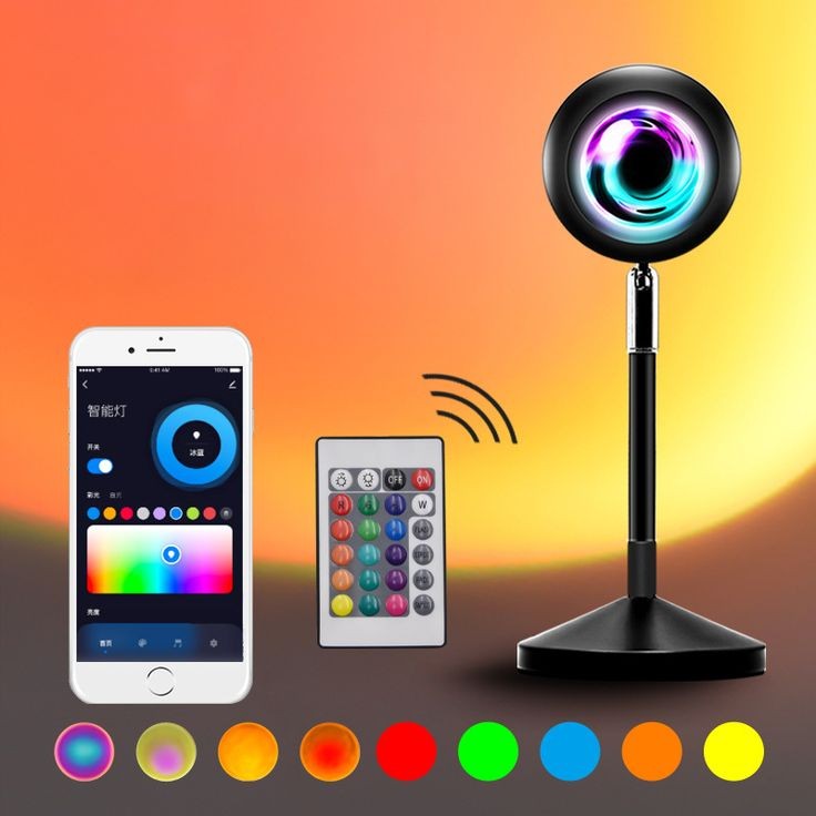【Sunset Light Color Changing with Remote】 Our Sunset Lamp comes with adjustable brightness and 4 lighting effect change modes: Jump effect-Strobe effect-Gradient effect-Smooth Gradient. Which can all remote controlled with the wireless remote. Very convenient.
