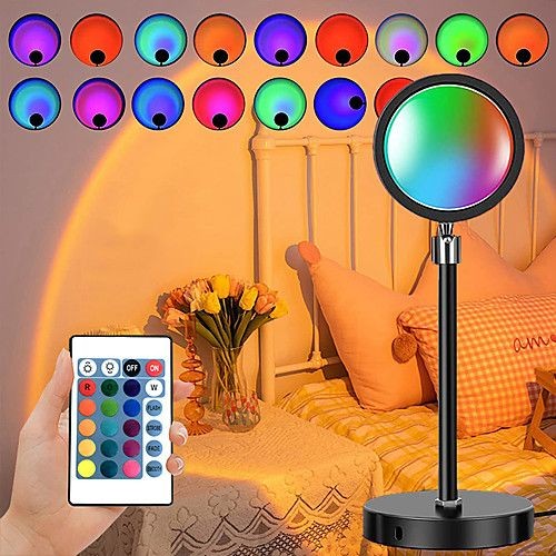 【16 Colors RGB Sunset Lamp】The multicolor sunset lamp is the perfect romantic visual led light to improve the aesthetic and dynamic of your room. There are 16 different unique colors to choose from so depending on your mood you can pick what suits you.