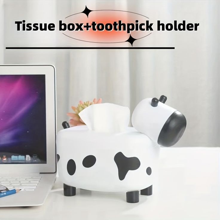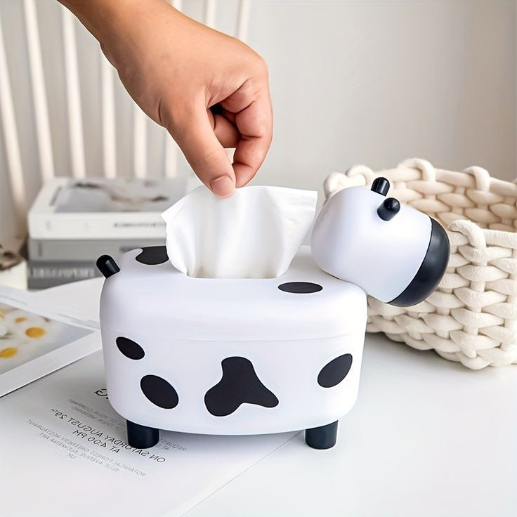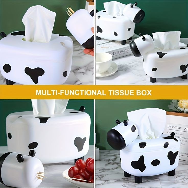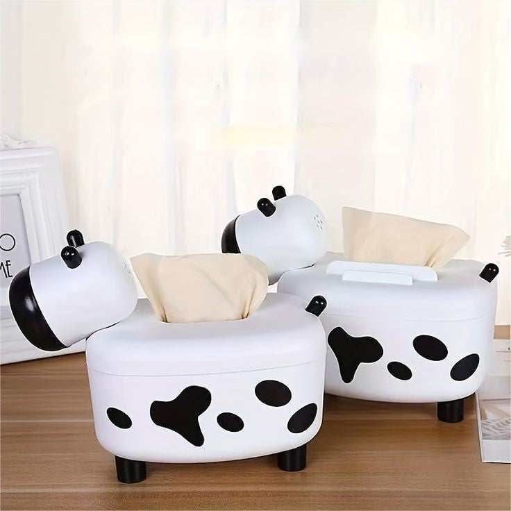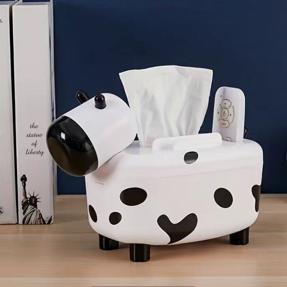 Cute Multifunction Tissue Box Holder Cow for Home Kawaii Desktop Decor DIY Toothpick Case Tea table Holder Storage Organizer.