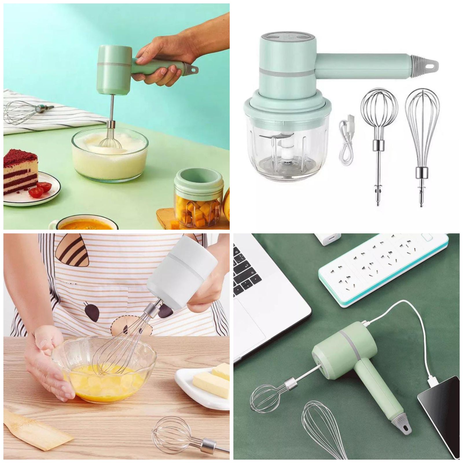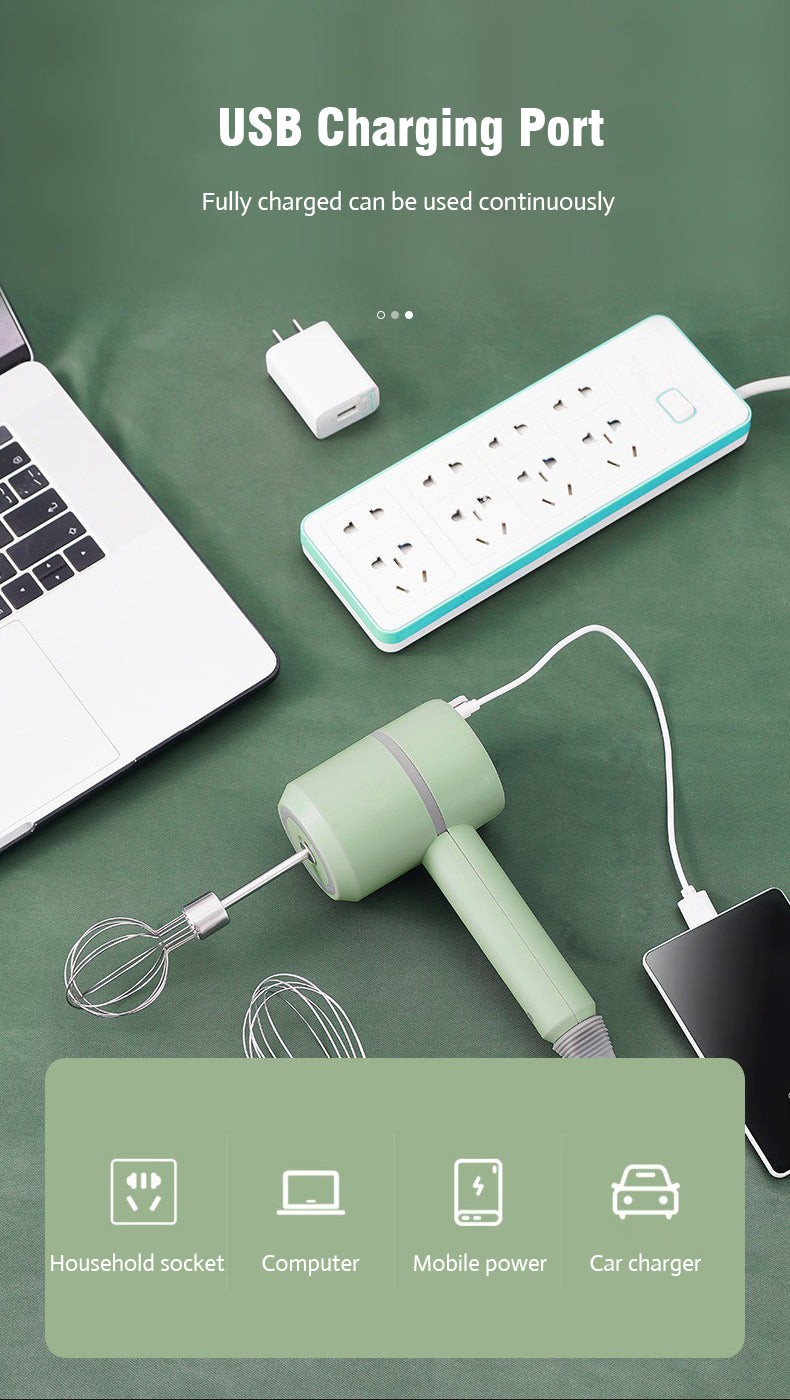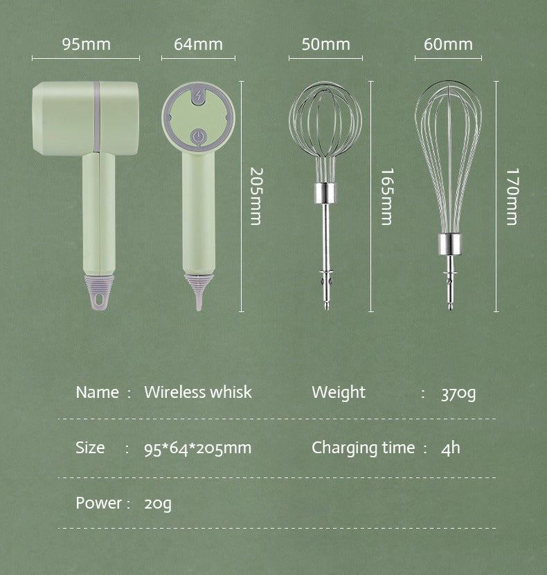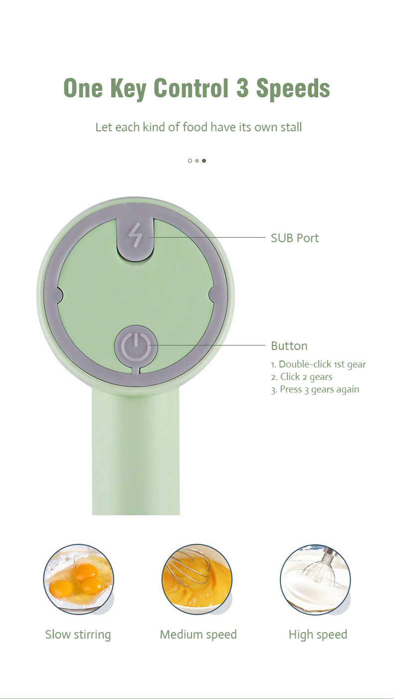Package Includes: 1 x Electric Egg Beater, 2 x Whisk Heads, 1 x Garlic Cup, 1× user Manual, 1 × USB Cable