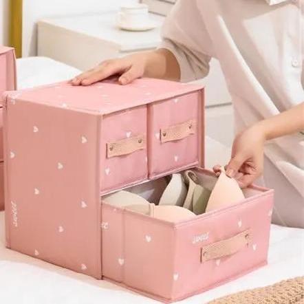 - 2 layers drawer underwear bra storage box clothing hanker chief closet drawer cloth heart socks.