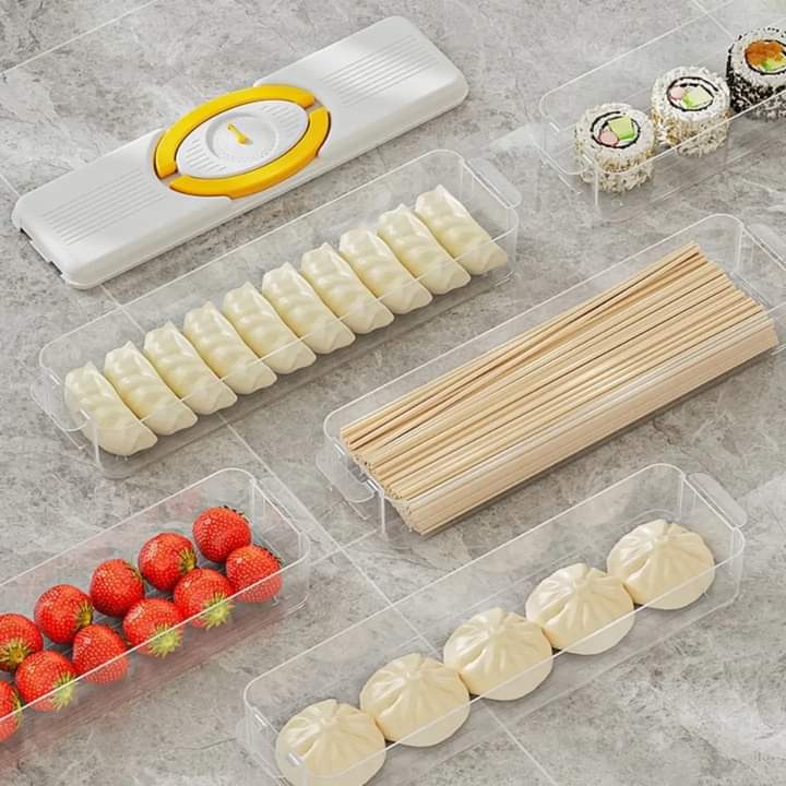 Effortless Storage : Keep your dumplings fresh easy to access with our stackable storage box. The secure buckle lock ensures safety, while the stable design allows for efficient stacking, making it a perfect space-saving solution for your favorite dumplings.