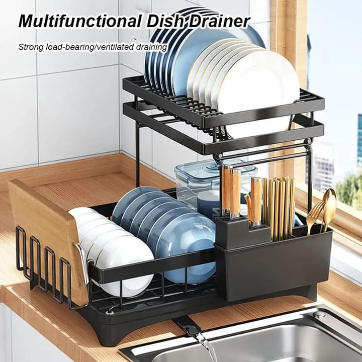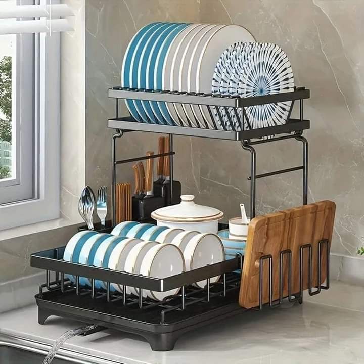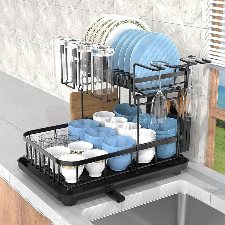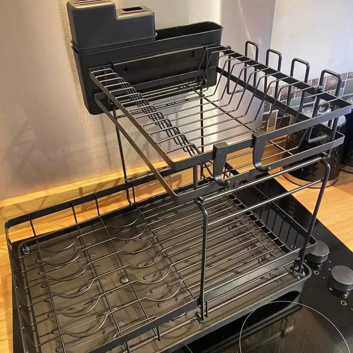 ✓ [Extra large capacity, double storage】 This dish rack has a spacious space and a double-deck design to maximize your kitchen space. It is like a beautiful home for dishes and tableware, making them orderly and no more confusion. You can easily integrate the kitchenware and find what you need at a glance.