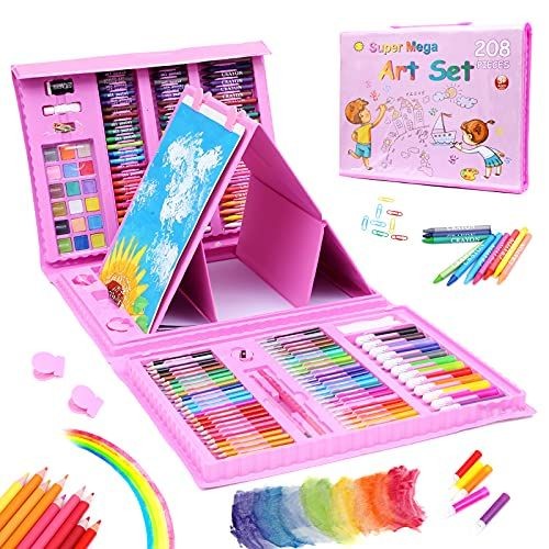 Package Content : This pack of 208 pieces colouring kit includes 24 crayons, 48 oil brushes, 12 markers, 24 colored pencils, 24 watercolor pens, 18 watercolors, 30 clips, 1 drawing brush, 1 eraser, 1 pencil sharpener, and other art and craft items, and a case for carrying all of it. You can achieve an eye-catching and visually appealing piece of artwork by using a variety of colors of this drawing set.