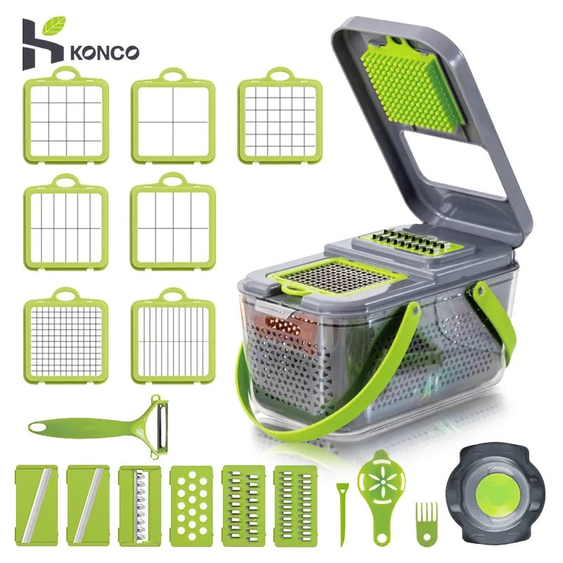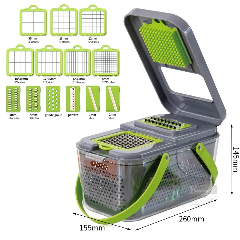 [High-quality] The vegetable chopper is equipped with stainless steel blades for chopping/dicing very hard vegetables.