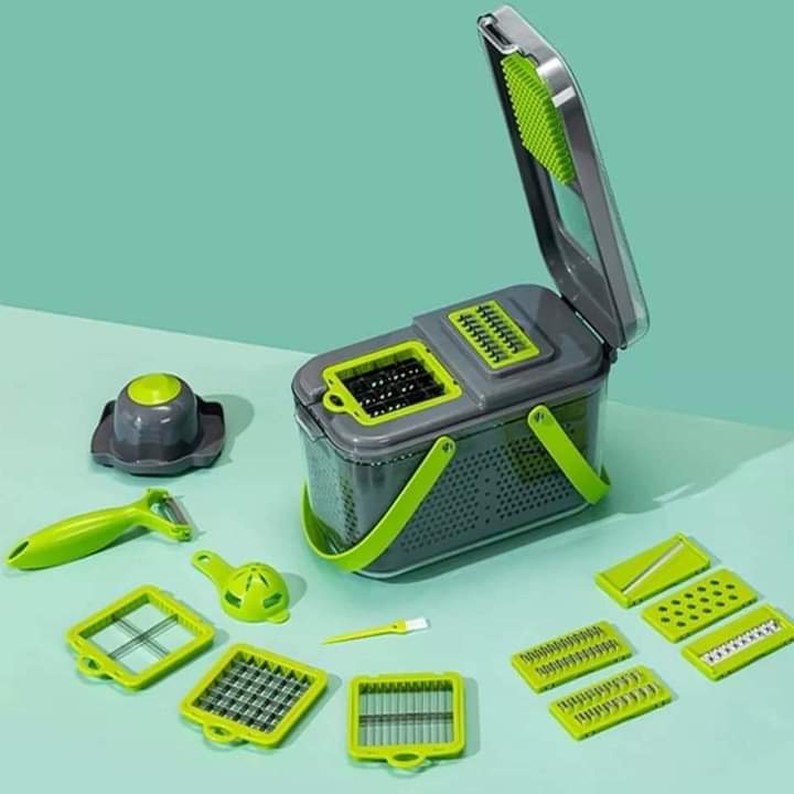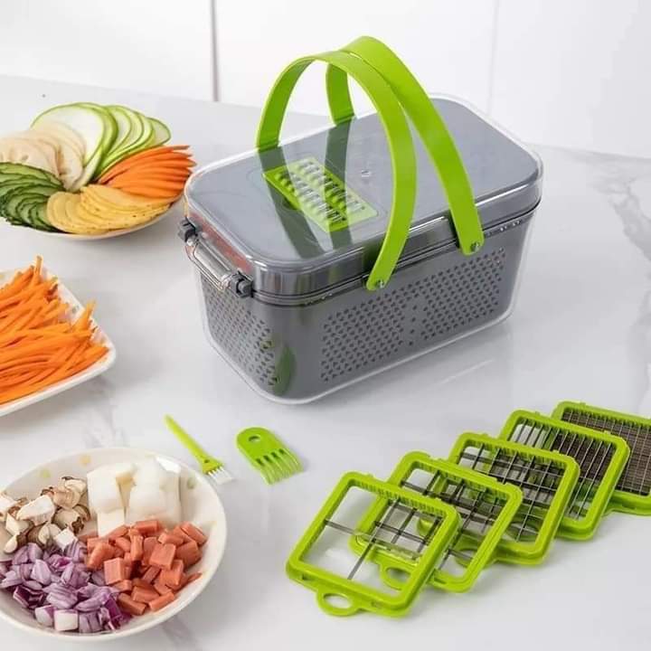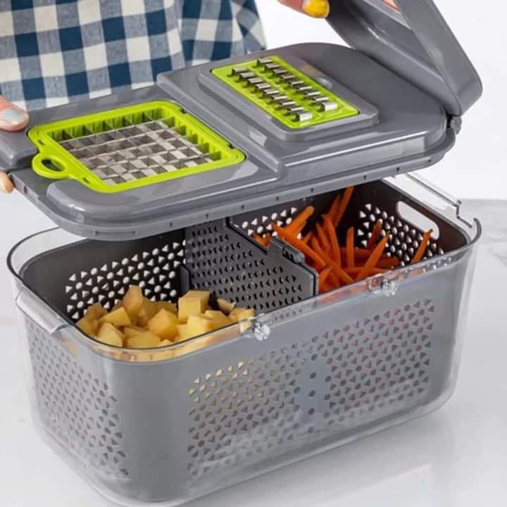 The multifunctional vegetable chopper allows to slice, grate, dice, and cut a variety of vegetables and fruits in a variety of shapes and sizes easily and with flexibility in a minimum time. Premium brake resistance and rubberized non-skid base ensure stability and safety.