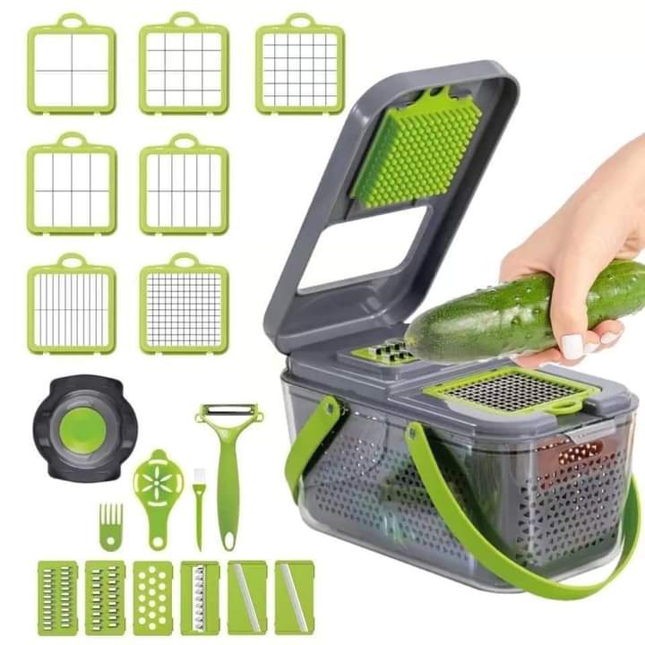 [Multifunctional] With 13 interchangeable blades and an extra peeler, through which you can get a big or small, thick or thin slice, shreds, or julienne.