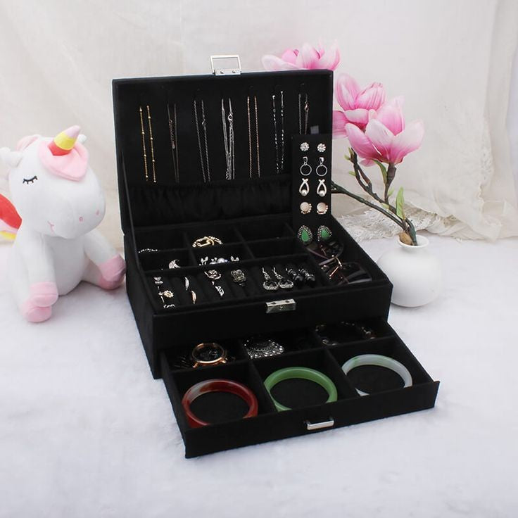 Home Decoration & Space Saver - All your jewelry would be stayed on the box in a pristine condition and easy to reach, your dressing table won’t be messy again, and simple appearance decorates your room.