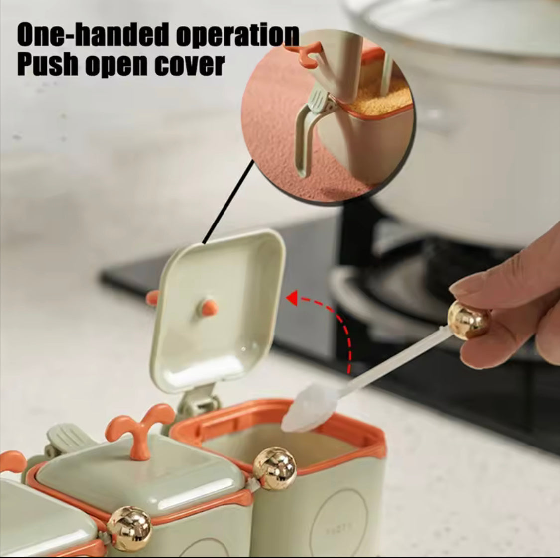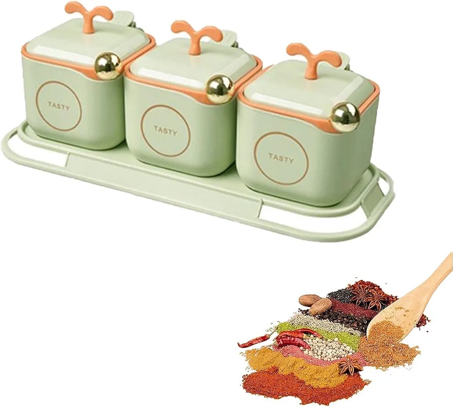 3-Piece Modern Spice Jar Set with Tray & Spoons – Airtight Containers for Kitchen Storage