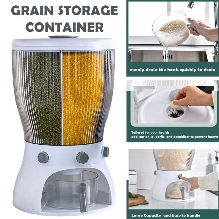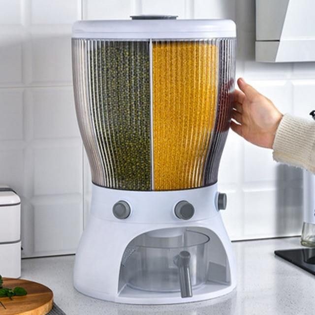 [ 360°Rotation ] --The rice bucket can be rotated 360°, which is convenient for dumping without moving. The top cover can be removed, which is convenient for adding grain and adding more convenient. So that the food will not be messy or Smell mix during storage, and it is convenient to take.