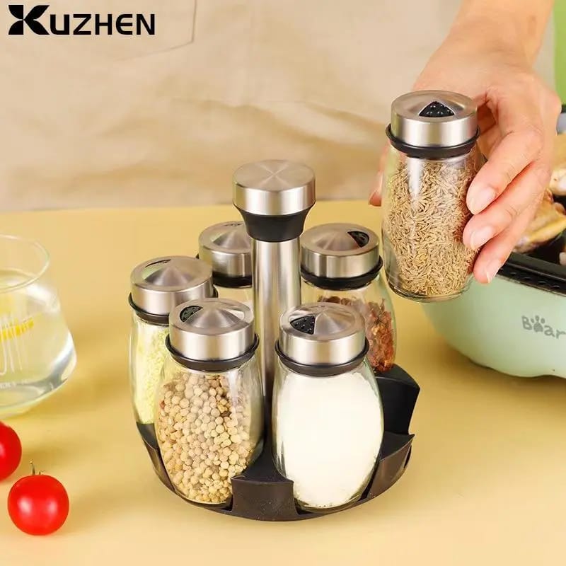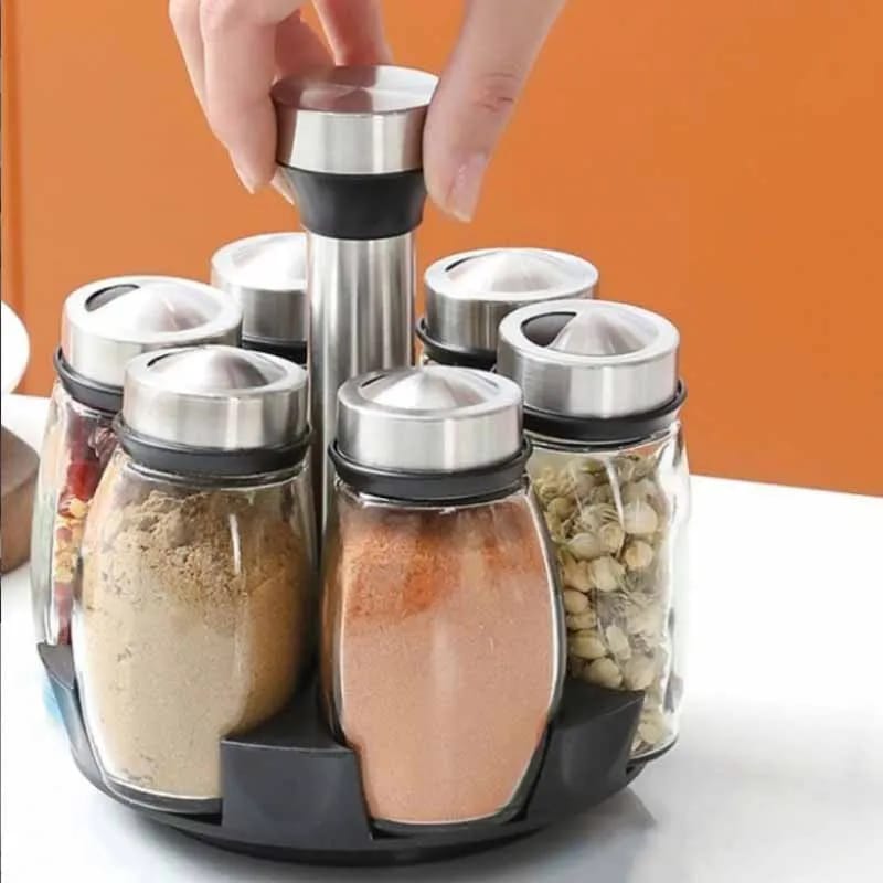 360° rotatable, saving space, cooking more convenient. It is these spice bottles features with stainless steel cover that it can prevent spice from leaking out and polluting.