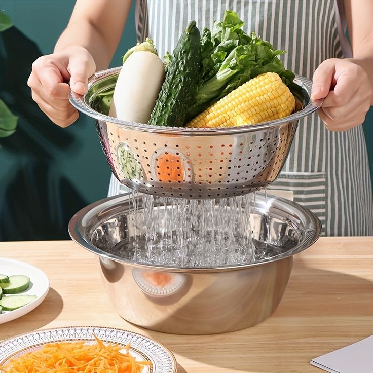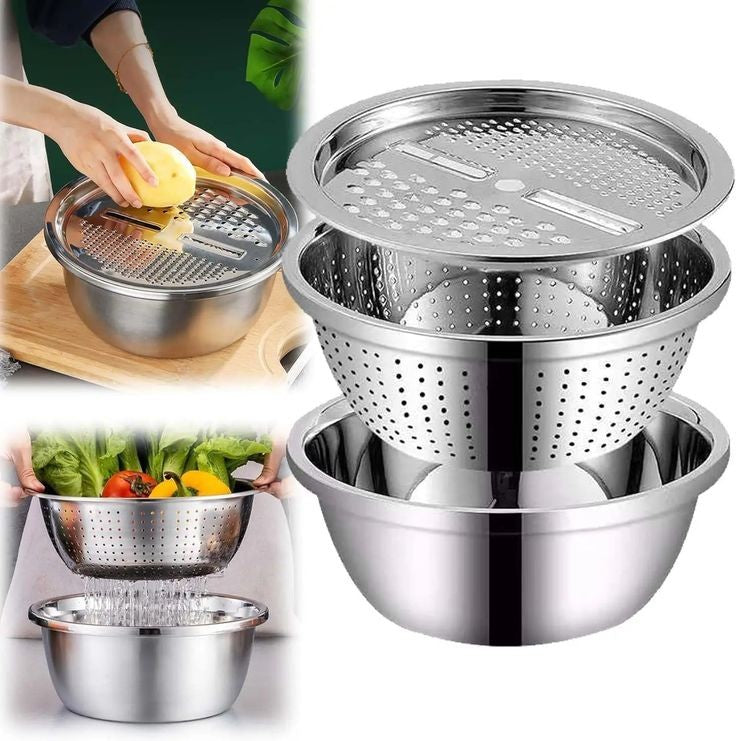 3Pcs Stainless Steel Kitchen Set Colander Slicer Grater