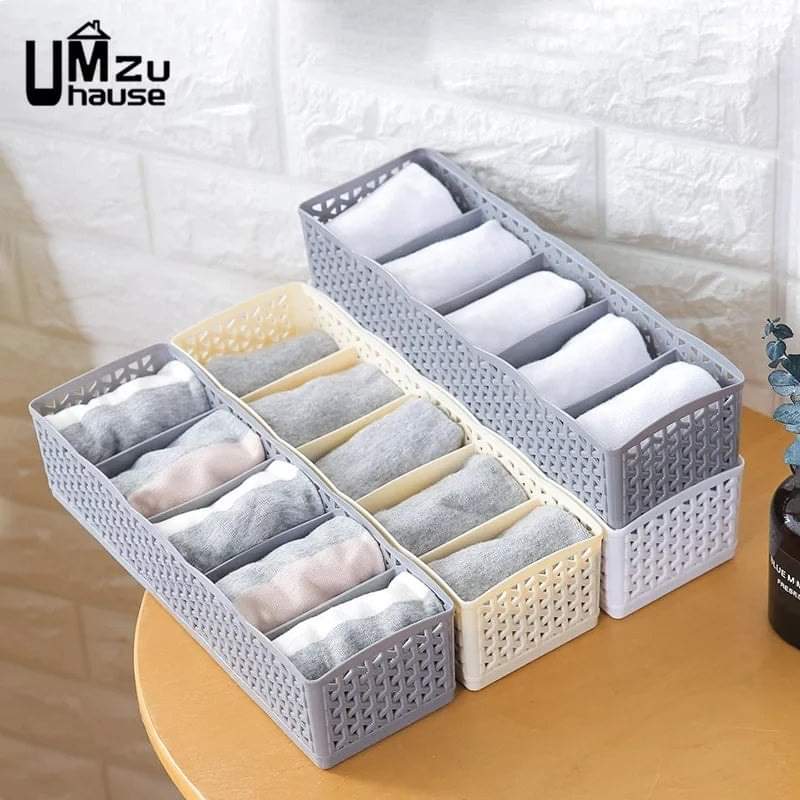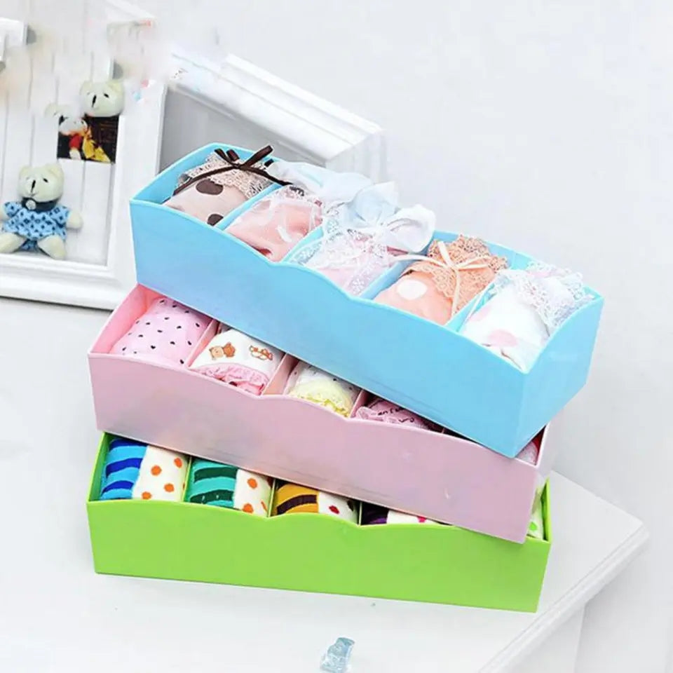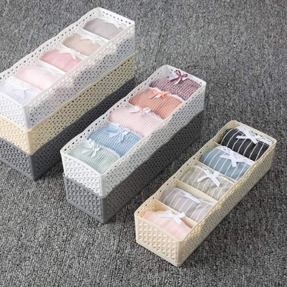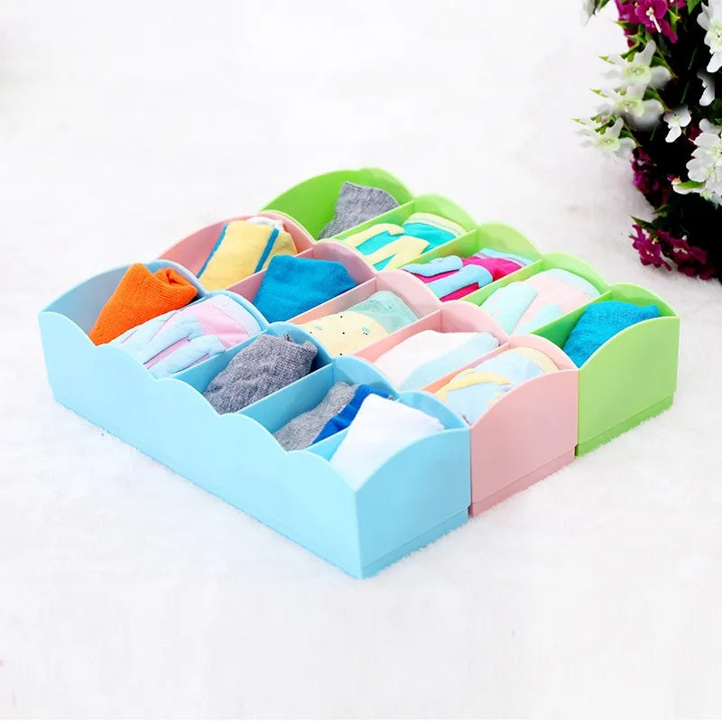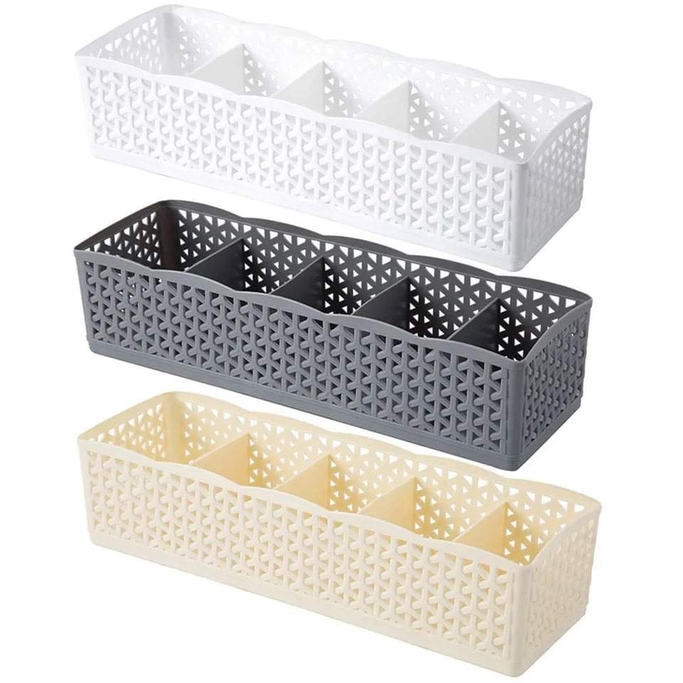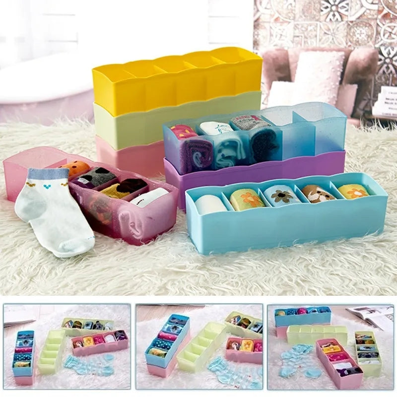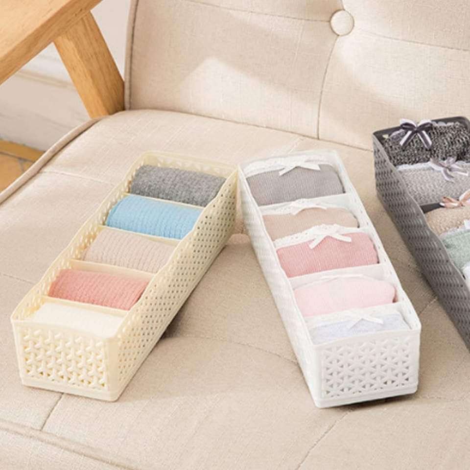 5 Girds Socks Underwear Panties Storage Boxes Ties Cable Drawer Divider Bins Organizer Wardrobe Stackable Case Home Organization