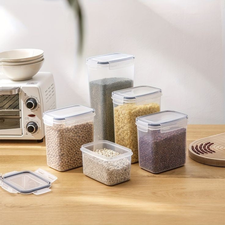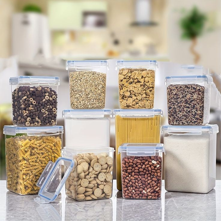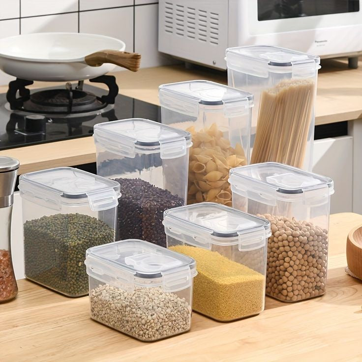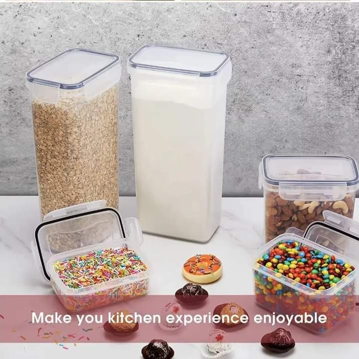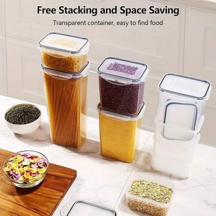 Reorganize Your Kitchen and Pantry Storage the kitchen & pantry organization and storage containers set are Airtight-performed, Built-to-last & Clearly-visible. The clear plastic material enable your to find foods easier and the stackable design saves your valued space. With these airtight food storage containers, every inch of your kitchen and pantry will be neat and organized and say goodbye to mess!