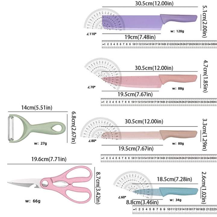 – **Versatile Collection :** This comprehensive set includes five distinct types of knives and one pair of scissors, covering all your kitchen cutting needs. Whether you’re slicing, dicing, chopping, or mincing, you’ll find the right tool for the job.
