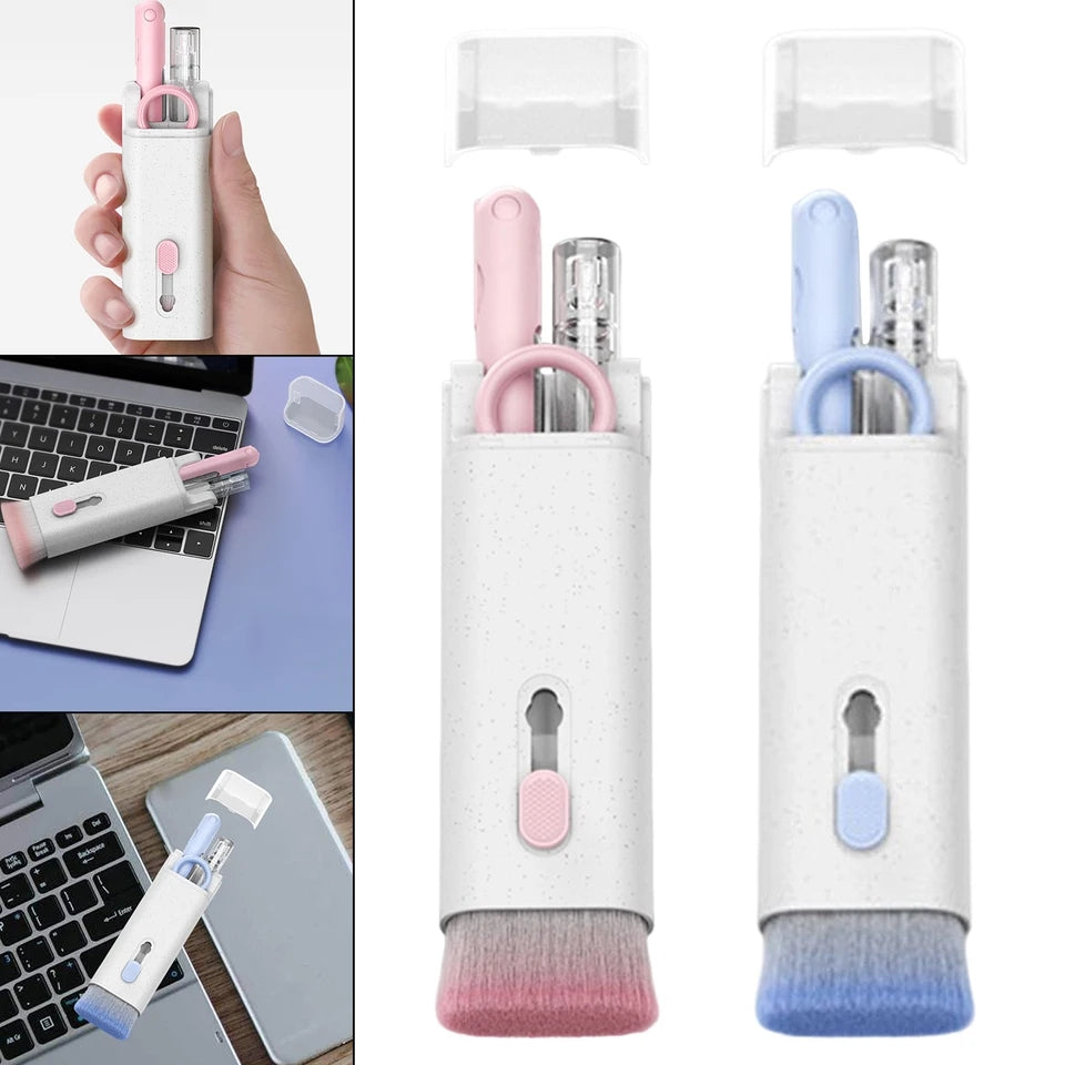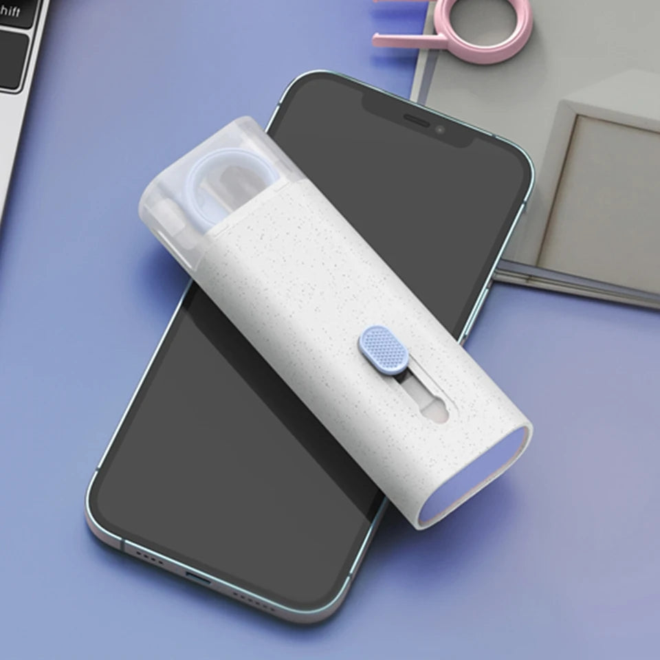 7-in-1 Electronics Cleaner Kit : This electronic cleaning kit including a 3 in 1 airpods cleaning pen (with silicone nib, earbud brush and flocking sponge swab), soft retractable keyboard brush cleaner, keycap buckle, sparyer bottle, and screen cleaning flannelette on back side.