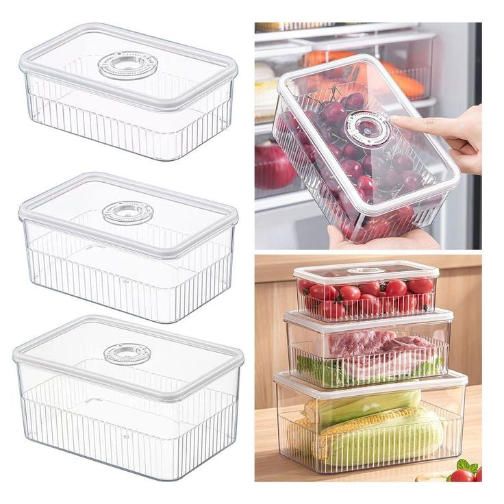 【Varied Sizes & Sealable】: Optimize the usage of your fridge and kitchen cabinets with our refrigerator storage container set which includes three distinct sizes. The thickened material and seal ring add an extra layer of shield, aiding in avoiding cross-flavoring and maintain food freshness.