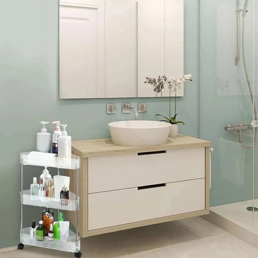 【Clear Design】Crafted from transparent high-quality plastic, its see-through appearance gives the storage shelf a sophisticated look, making it especially suitable for storing cosmetics.