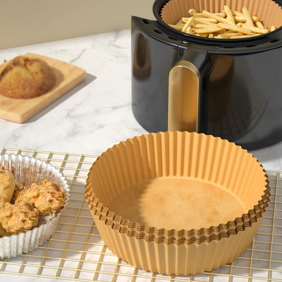 EASY TO USE : These non-stick, disposable air fryer interiors feature a round bowl shape that doesn't need to be torn, folded, cut or bent, and can be dropped right in when you're ready to cook. 4.5cm raised edge protects the sides of the fryer and prevents food from sticking to it