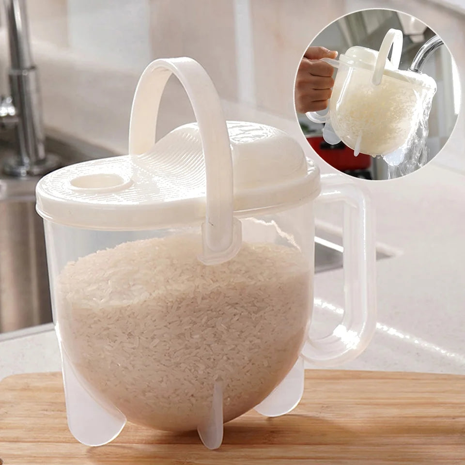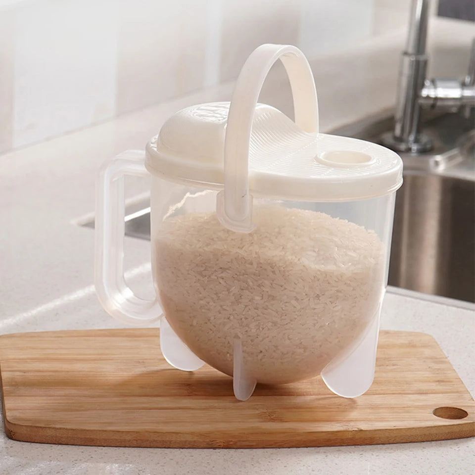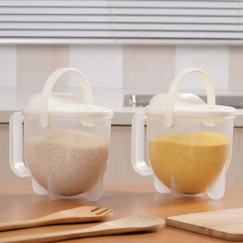 【Thickened PP material】ergonomically comfortable handle, easy to hold and move, non-slip bottom is stable, detachable outer cover, easy to pour rice, easy to use and effortless.