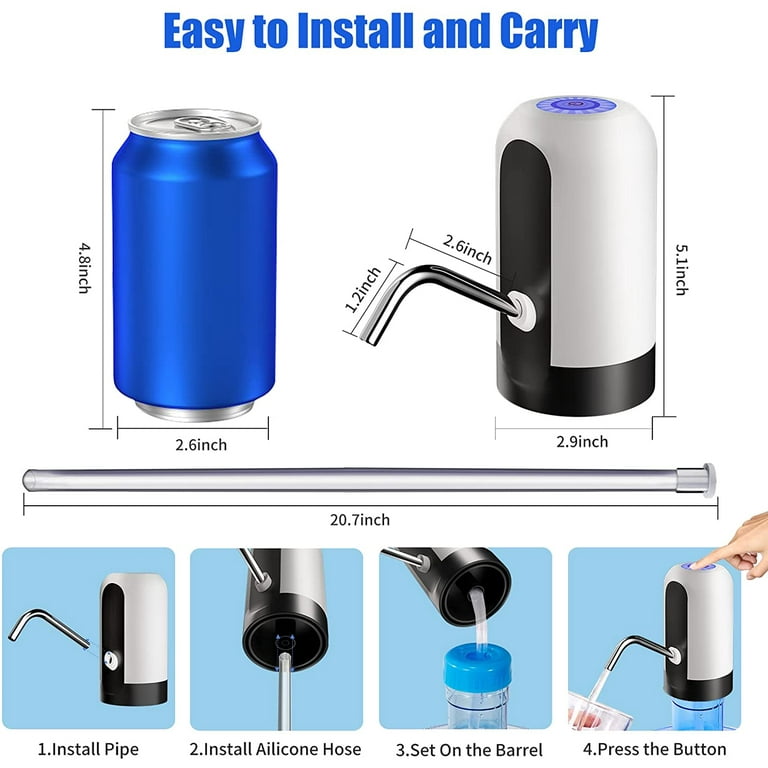 ✔️ Easy to Use: Simply open a small hole in the mouth of the bottle where you can put down the hose and snap the water pump to the bottle. One-button automatic switch operation, press the button to turn on or off.