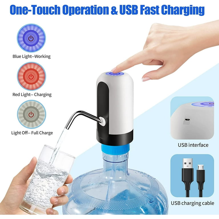 ✔️ Long-lasting Working Time: This USB rechargeable water pump is built in rechargeable 1200mAh battery, which can be used 30-40 days or pump about 4-6 bottles of 5 gallon water once full charged about 3 hours.