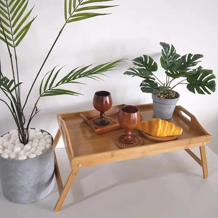This breakfast trays is made of natural bamboo and it is eco-friendly material. This makes it sturdy & durable and with natural bamboo scent.