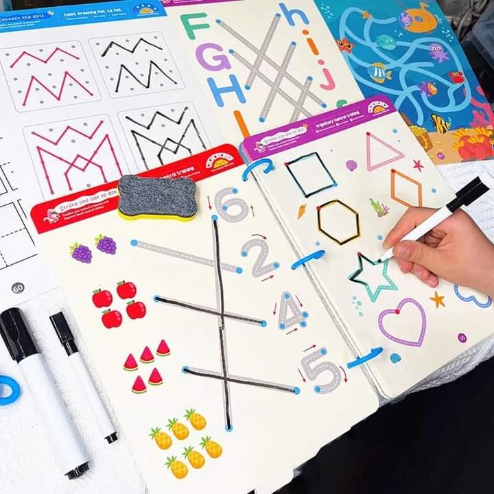 1. This extensive kindergarten and pre-school exercise book including coloring pictures and cognitive games offers varied exercises to support the fine motor skills, concentration and hand-eye co-ordination.