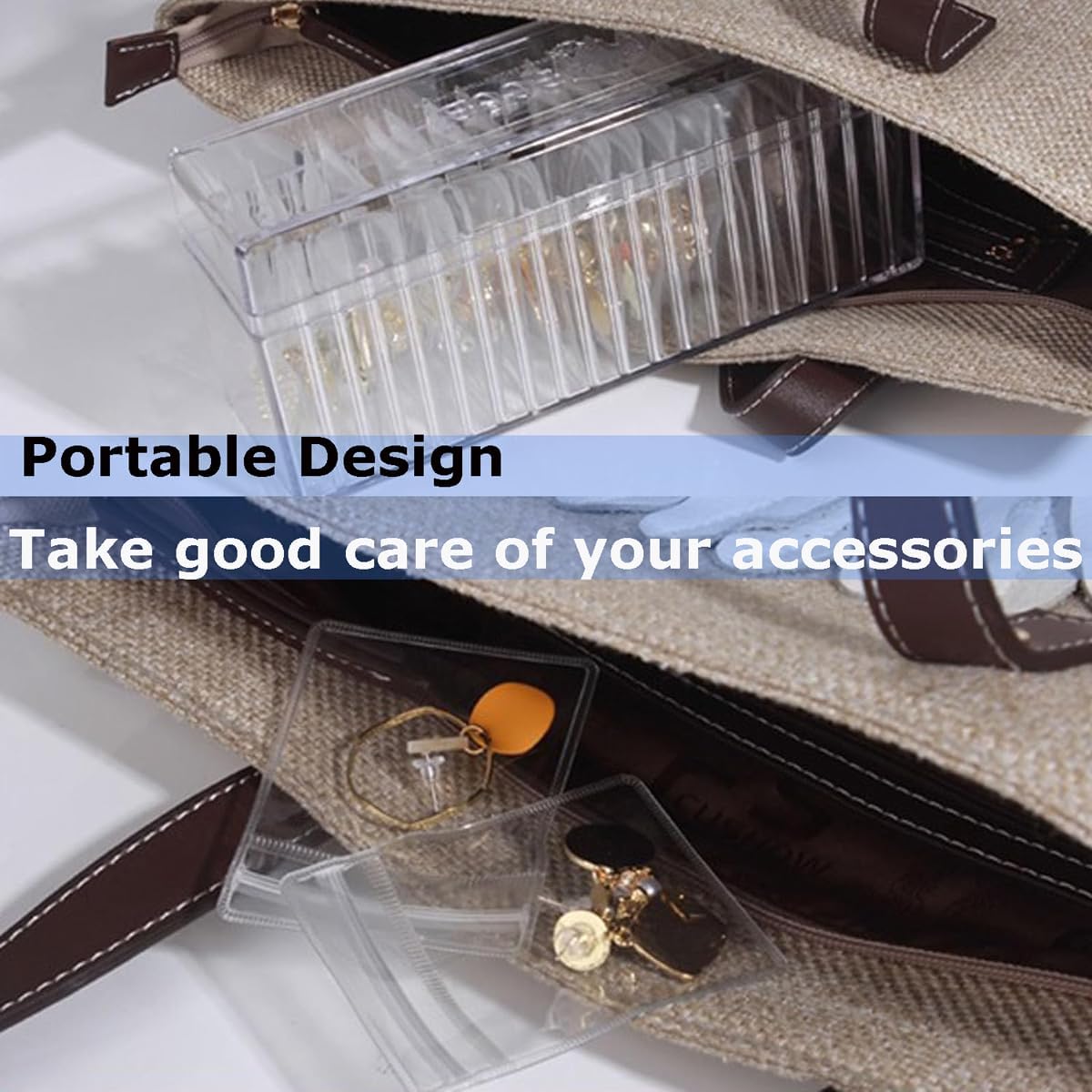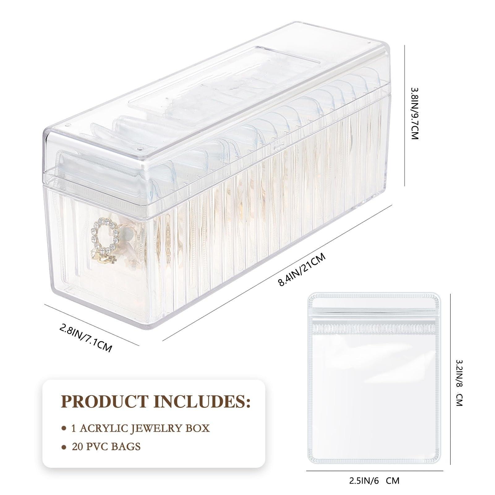 Clear Jewelry Organizer Box with 20 pvc Resealable Zip Bags – Compact Storage Case for Rings, Earrings, Necklaces & Small Accessories