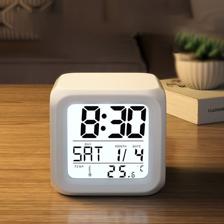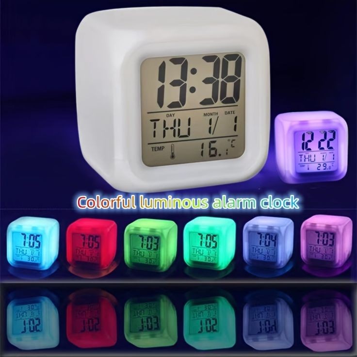 【COLORFUL LIGHT】7 color changes : This cool glow in the dark color changing alarm clock / mood lamp also displays a temperature thermometer display.