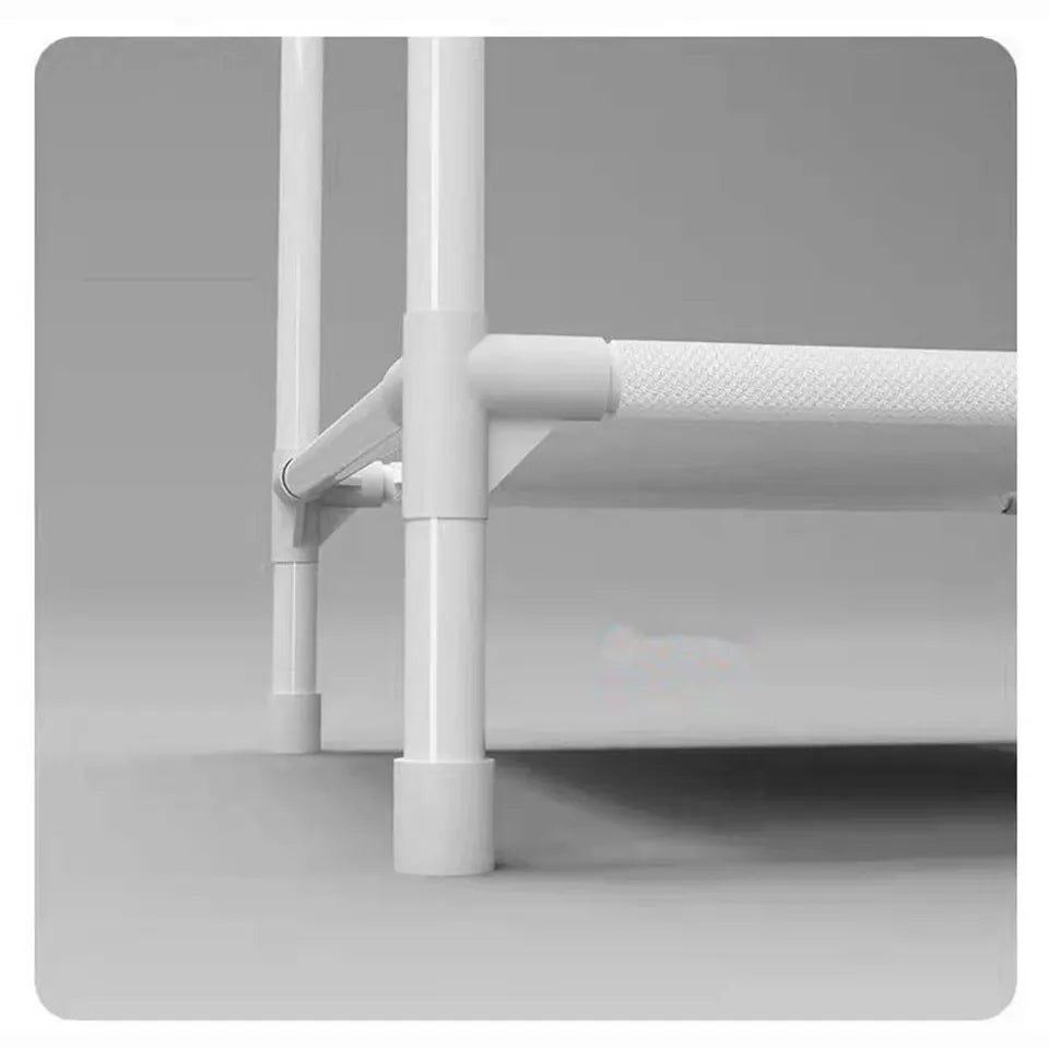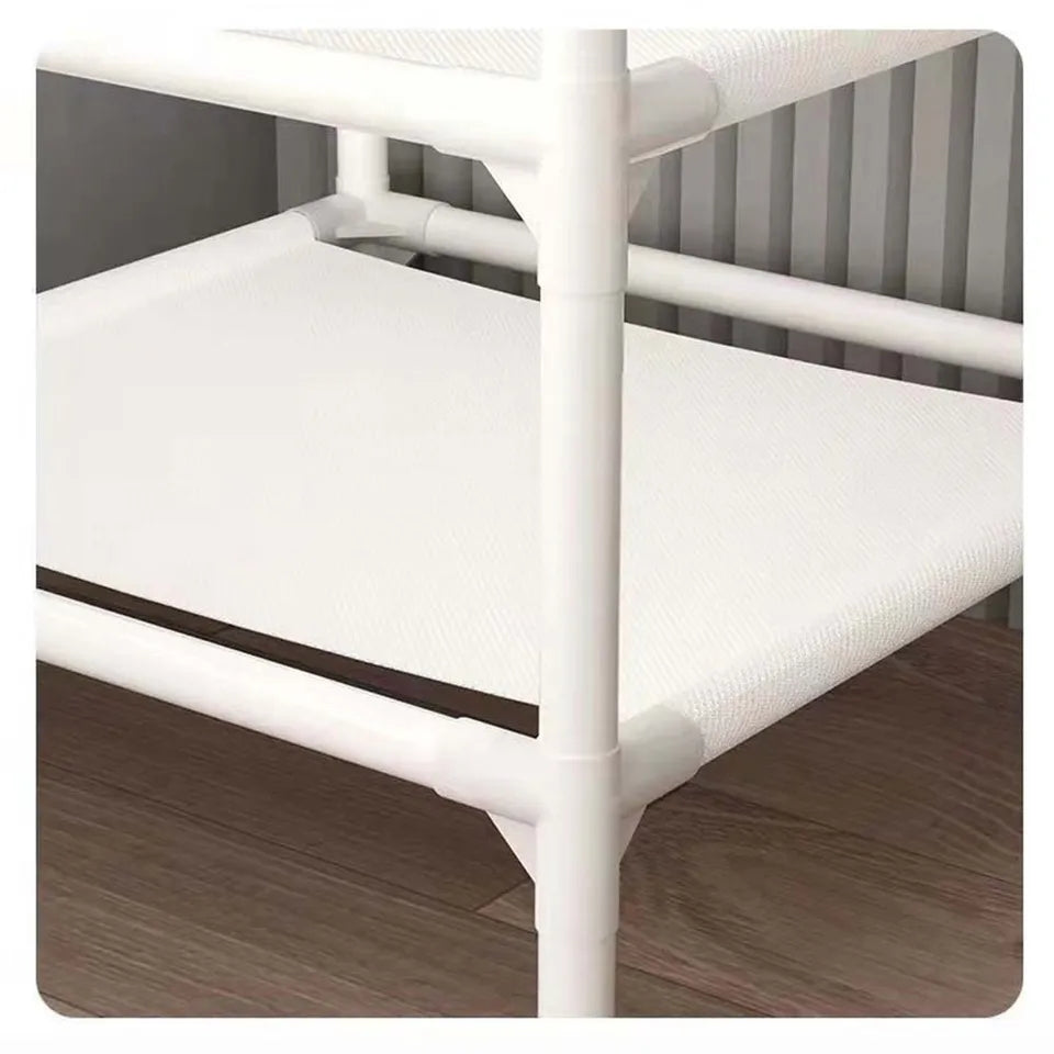 - Made of heavy-duty carbon steel and robust tube frame, this corner garment rack can carry a variety of clothes, shoes, bags and caps, which is solid to hold heavy items, durable to use for many years. Its surface is coated with a layer of eco-friendly paint, protecting it from water, rust or corrosion and making it easy to clean with a wet cloth. Shelf with thickened non-woven fabric is odorless, non-toxic and safe.