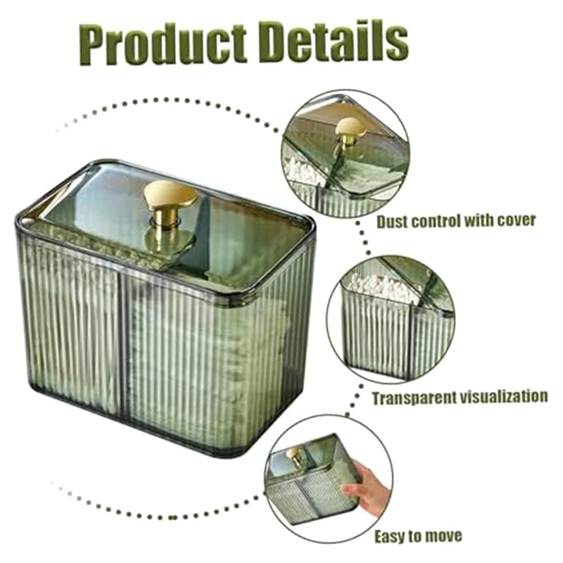 Cotton ball organizer: (cotton swab box) the space saving design provides plenty of room for storing a multitude of small essentials;perfect organizer for small objects, such as , cotton ball, cotton swab pad, cotton rounds, floss picks, tampon, , hair tie band, makeup brush, beauty egg, face brush, crayons, candy, pens,holds hair ties, clips, elastic bands, bobby , bows and more