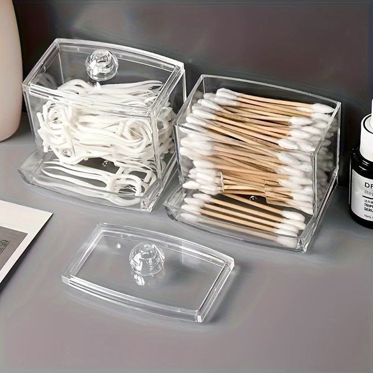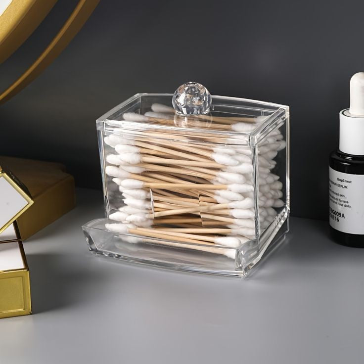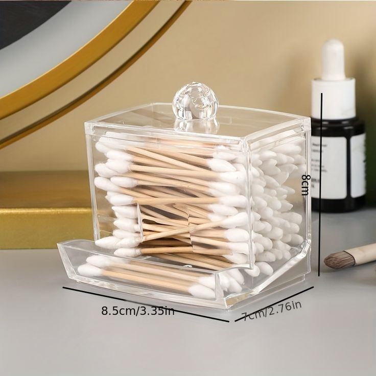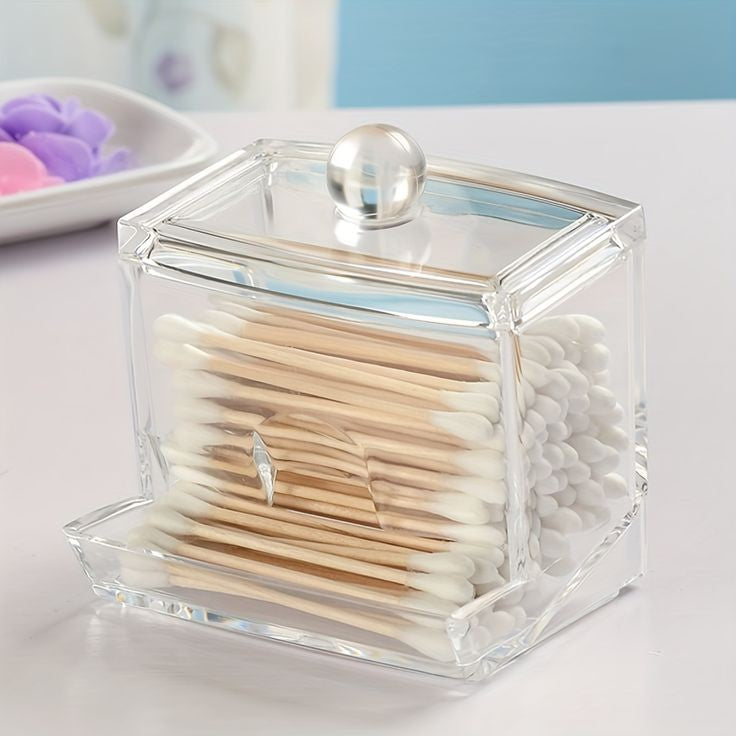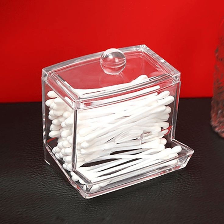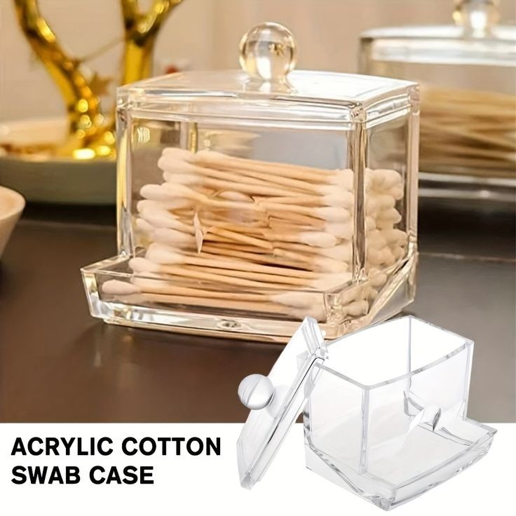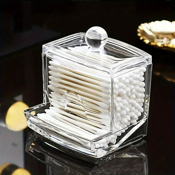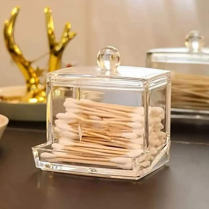 Clear cosmetic container for cotton swabs, cotton pads, transparent is easy for you to locate items. Being compact, it saves space and is convenient to take with, being glossy, it has a nice look.