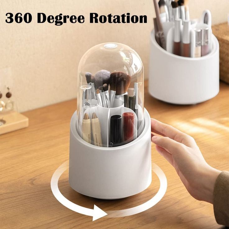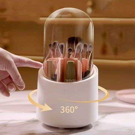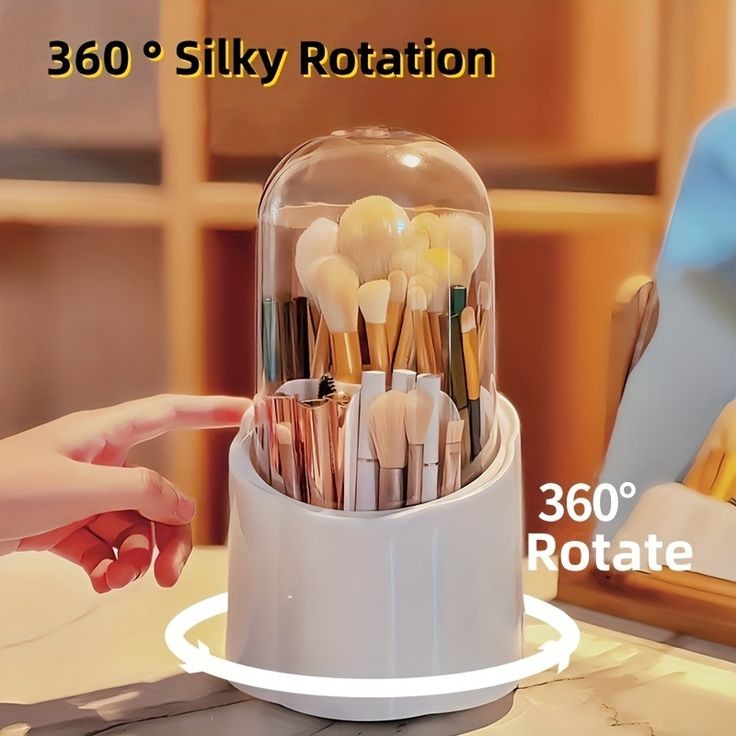 Rotating base : switch to your favourite angle to use and view.There are 4 round silicone patches within the package, which can be glued to the 4 support feet at the bottom of the makeup brush organizer for stability.