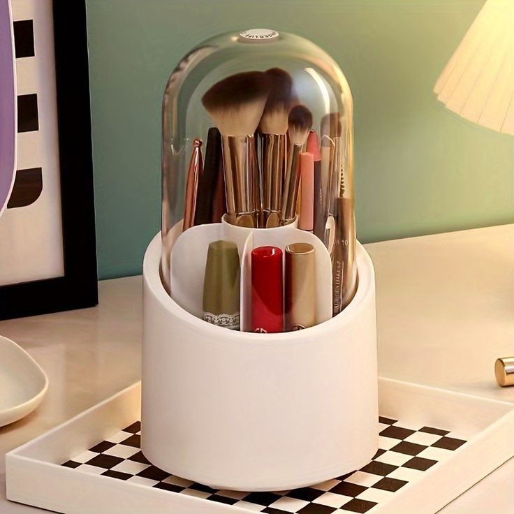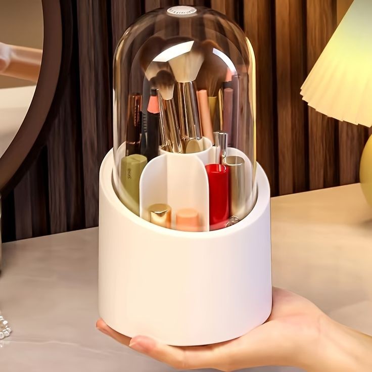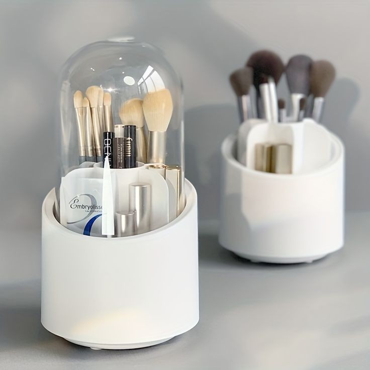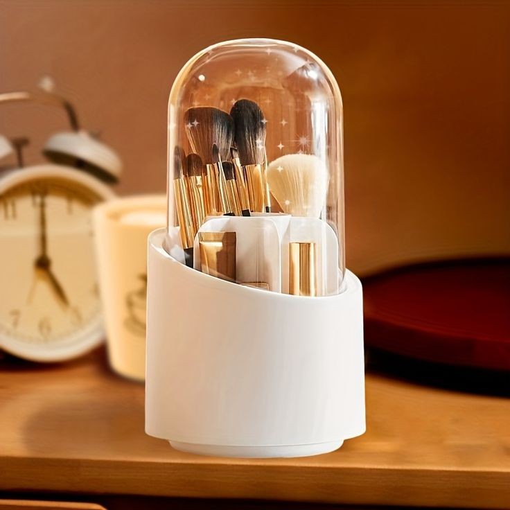 Acrylic clear cover can well protect your makeup brushes : no dust landing on the brushes; no make-up powder blowing around; and no water droplets when you put it in bathroom.