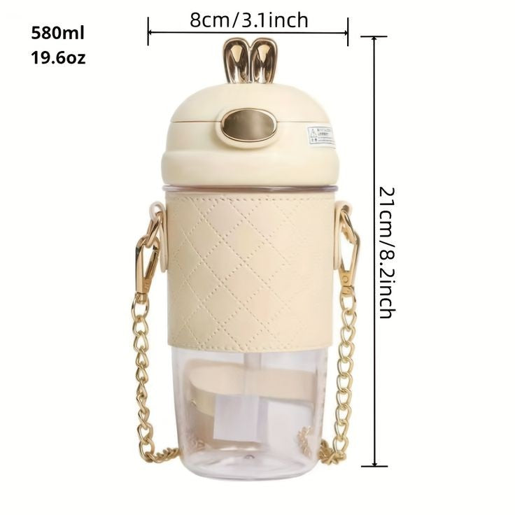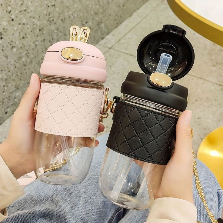 Leak Proof Design - The mouth of the water bottle with straw is sealed to keep the straw clean. The cute bottle can be worn on the back or carried in a bag.