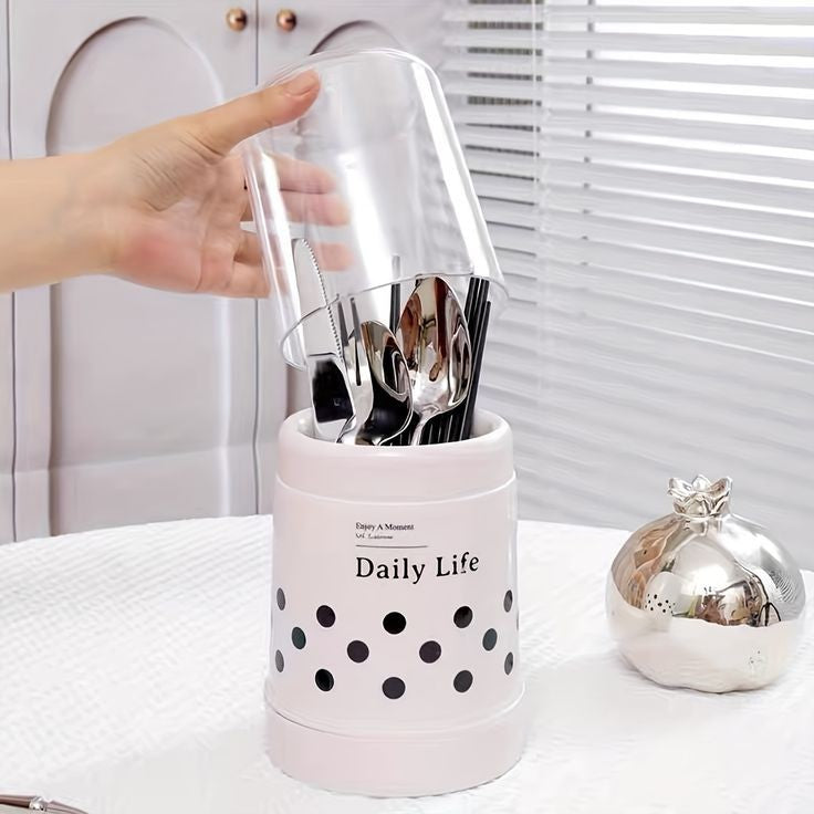 The bottom is equipped with drainage holes to avoid internal water accumulation, allowing the utensils to dry quickly. Due to the presence of the base, it will not wet the countertop. Simply pour out the water regularly from the base.