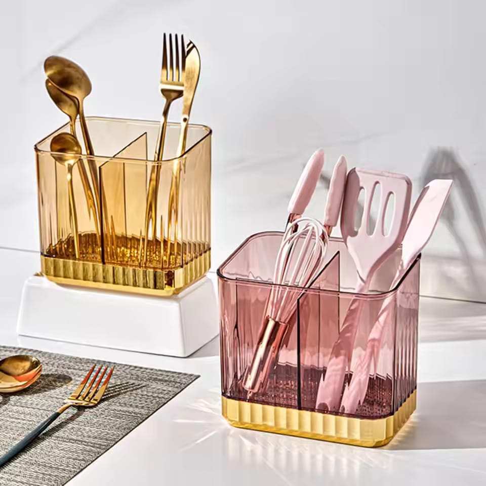 1 Set Cutlery Storage Box 🍴 | Large Capacity, Light Luxury Transparent Organizer