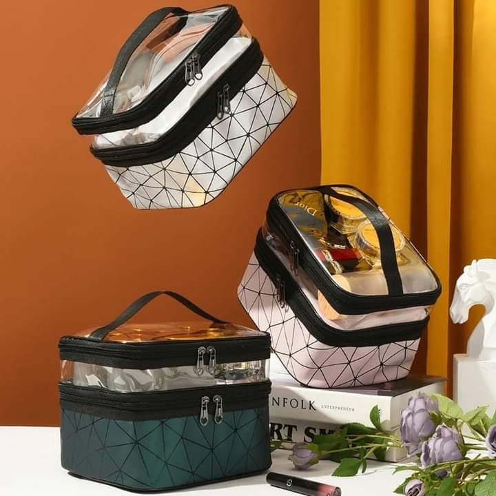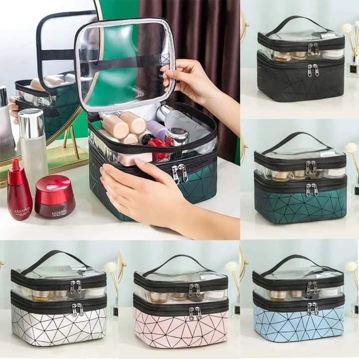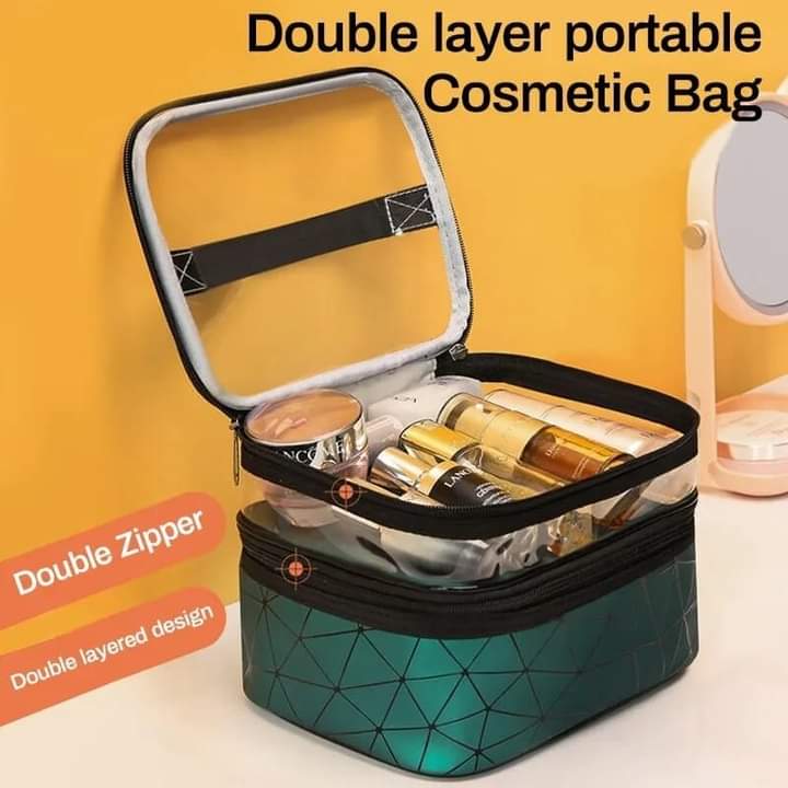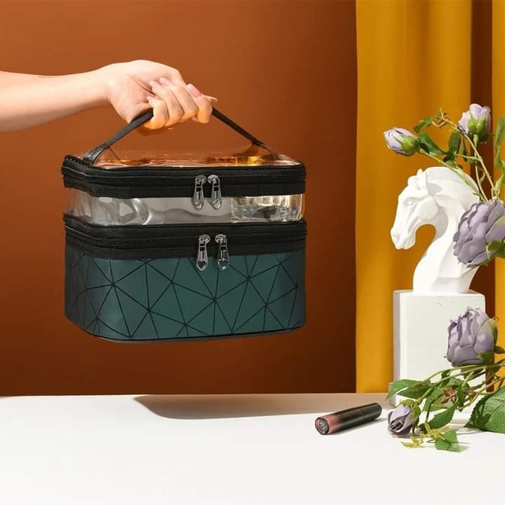 Fashion Large Capacity Women makeup travel cosmetic bag Organizer double layer cosmetic toilet bag case Organizer