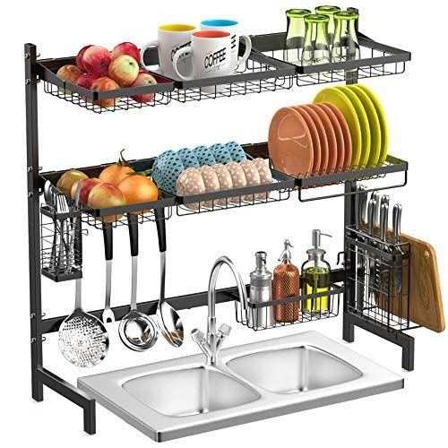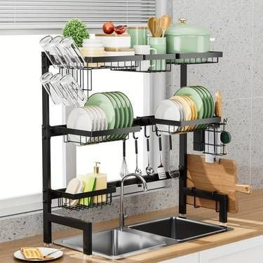 【High Quality Material】The dish rack on the kitchen counter is made of high quality and durable carbon steel metal, the surface coating can effectively protect the iron material from rusting. There is a suction cup underneath the sink frame, which can prevent the sink frame from shaking and enhance stability.