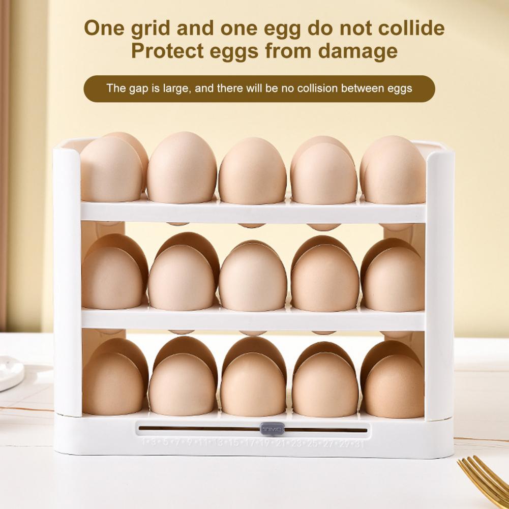 Egg Organizer Shelf Edge Large Capacity with Handle Save Space Burr Free Rotating Kitchen Storage Tray Kitchen Supplies