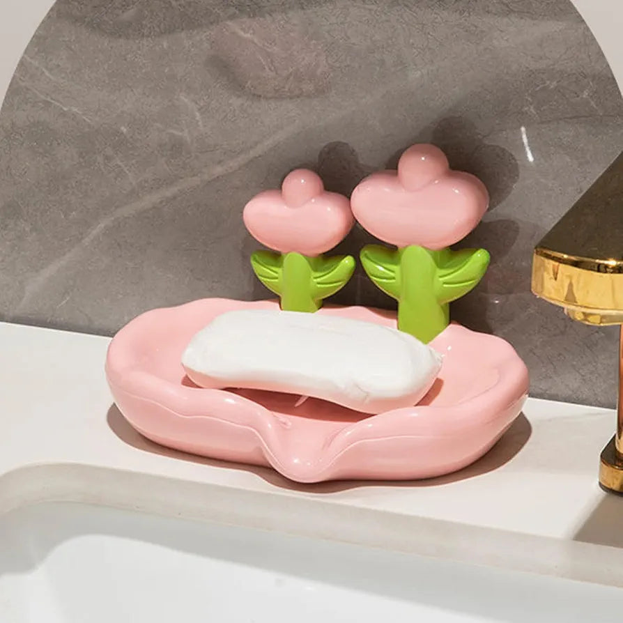 Flower Decor Creative Floral Soap Dish With Dual Drainage Design