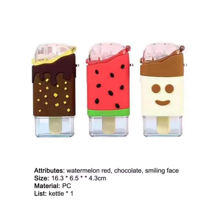 Material : Crafted from durable and BPA-free plastic, this water bottle is safe for everyday use and resistant to impacts and scratches. The material also ensures that the vibrant colors and patterns of the ice cream design remain vivid over time.